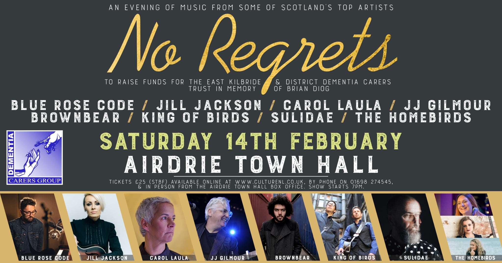 Join us for an evening of amazing music with some of Scotland’s finest songwriters and performers, in aid of the charity East Kilbride & District Dementia Carers Trust, and to remember our dear friend Brian Doig, who led it for 30 years before losing a long battle with cancer in June 2025.