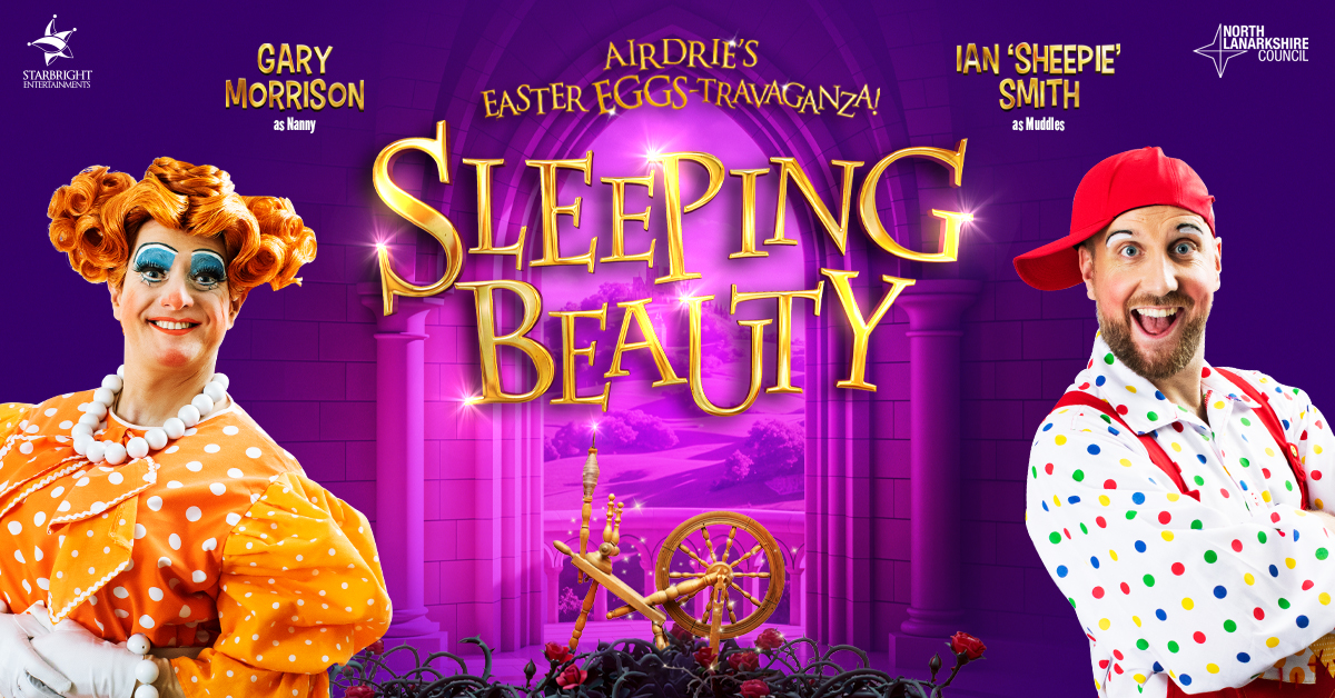 Starbright Entertainments have teamed up with Airdrie Town Hall once again to bring you a brand new Easter pantomime adventure – SLEEPING BEAUTY. Easter favourites IAN ‘SHEEPIE’ SMITH and GARY MORRISON are back to bring the laughs joined by GILL McGOWAN as the Fairy Godmother, PHIL NORTON as the wicked